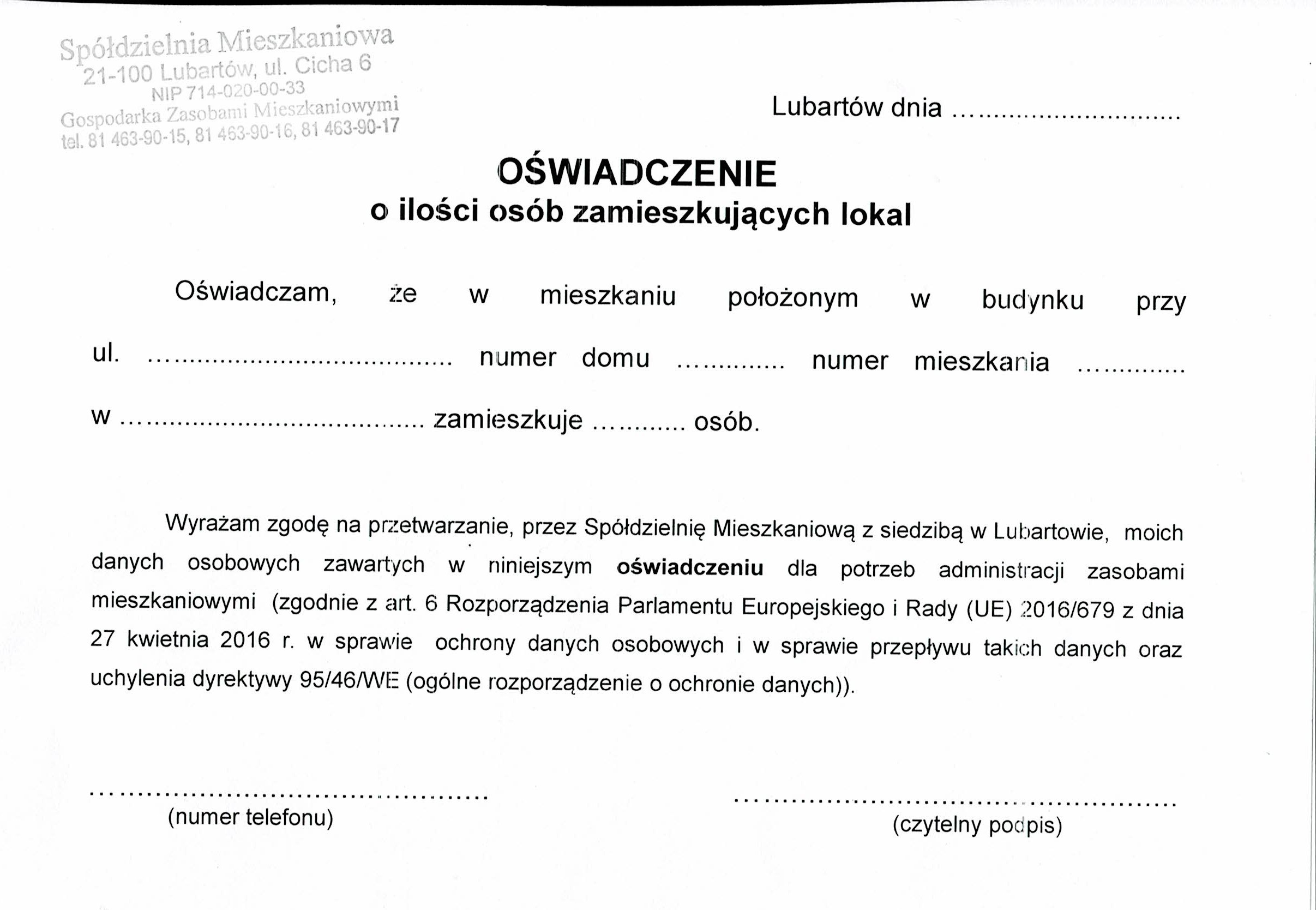 Informacja o przetwarzaniu danych osobowych członka Spółdzielni Mieszkaniowej