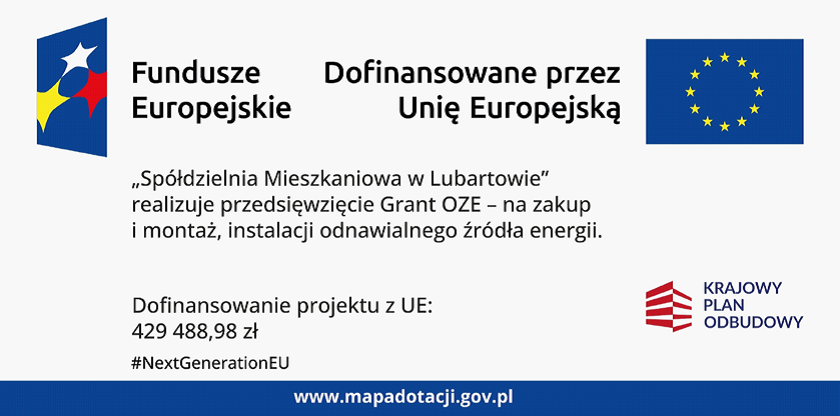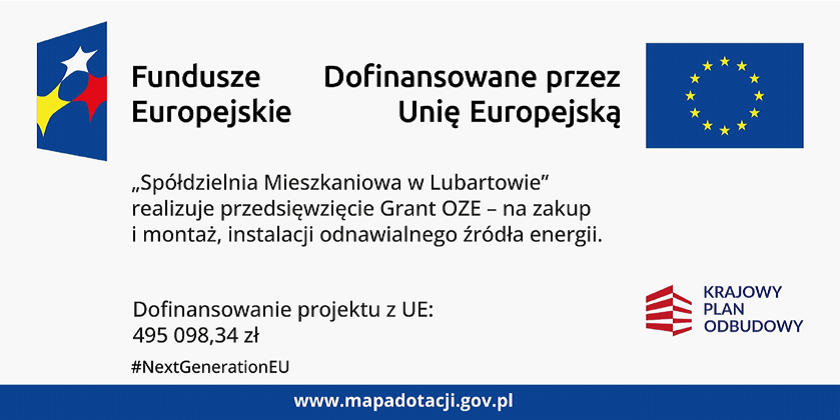 Spółdzielnia Mieszkaniowa w Lubartowie realizuje przedsięwzięcie Grant OZE – na zakup i montaż, instalacji odnawialnego źródła energii.